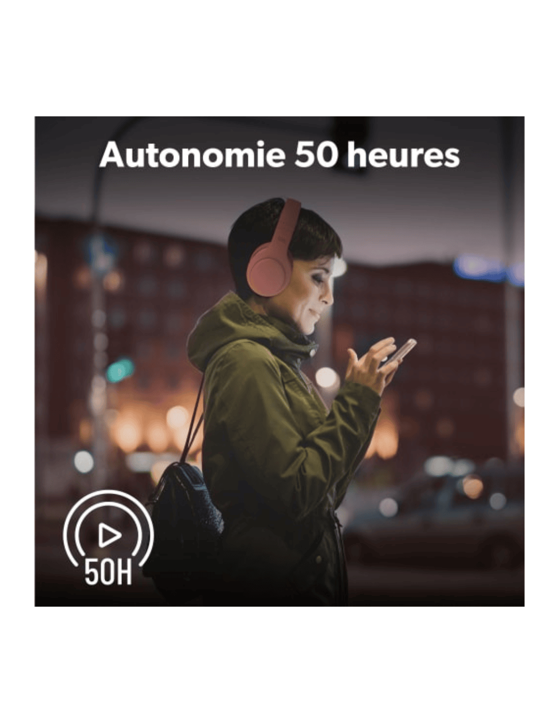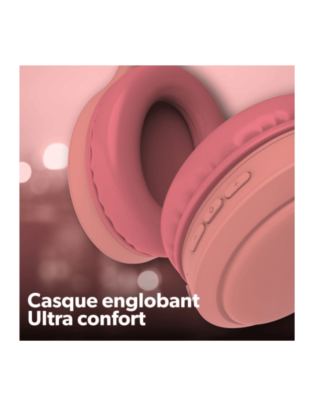 Casque Bluetooth TONALITY T'nb - Connexion sans fil : Bluetooth 5.0 - Mode filaire possible : câble jack 3,5 mm inclus - Autonomie : 50 heures - Isolation : Réduction passive des bruits extérieurs - Commandes intégrées : Musique, volume, appels - Micro intégré : Pour appels mains libres - Design pratique : Pliable avec arceau réglable - Couleur : Rose
